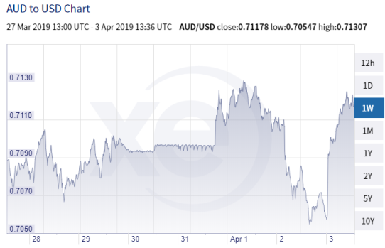 Markets are in a buoyant mood this morning with global equity indices trading in positive territory. Investors received a boost after Caixin China PMI data sent a strong signal of increasing activity at the end of Q1. The print came at 52.9, up from 50.7 in the previous month. The economy seems to be making a recovery after hitting a recent soft patch. Reports that the US and Chinese officials are meeting to put final touches to an imminent trade deal have encouraged risk-on trading activity. The AUD has strengthened nearly 1% on the news and fueled by strong activity in the commodities markets. Oil prices extend its gains, posting a fresh five-month high at $62.98. Twitter feeds from the White House has been unusually quiet despite WTI closing on a 38% gain so far this year.