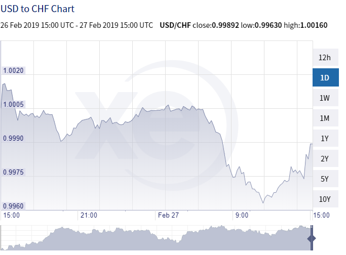 The Swiss franc is stronger across a basket of currencies as investors and traders look for a safe haven currency on the back of global growth concerns and geopolitical concerns