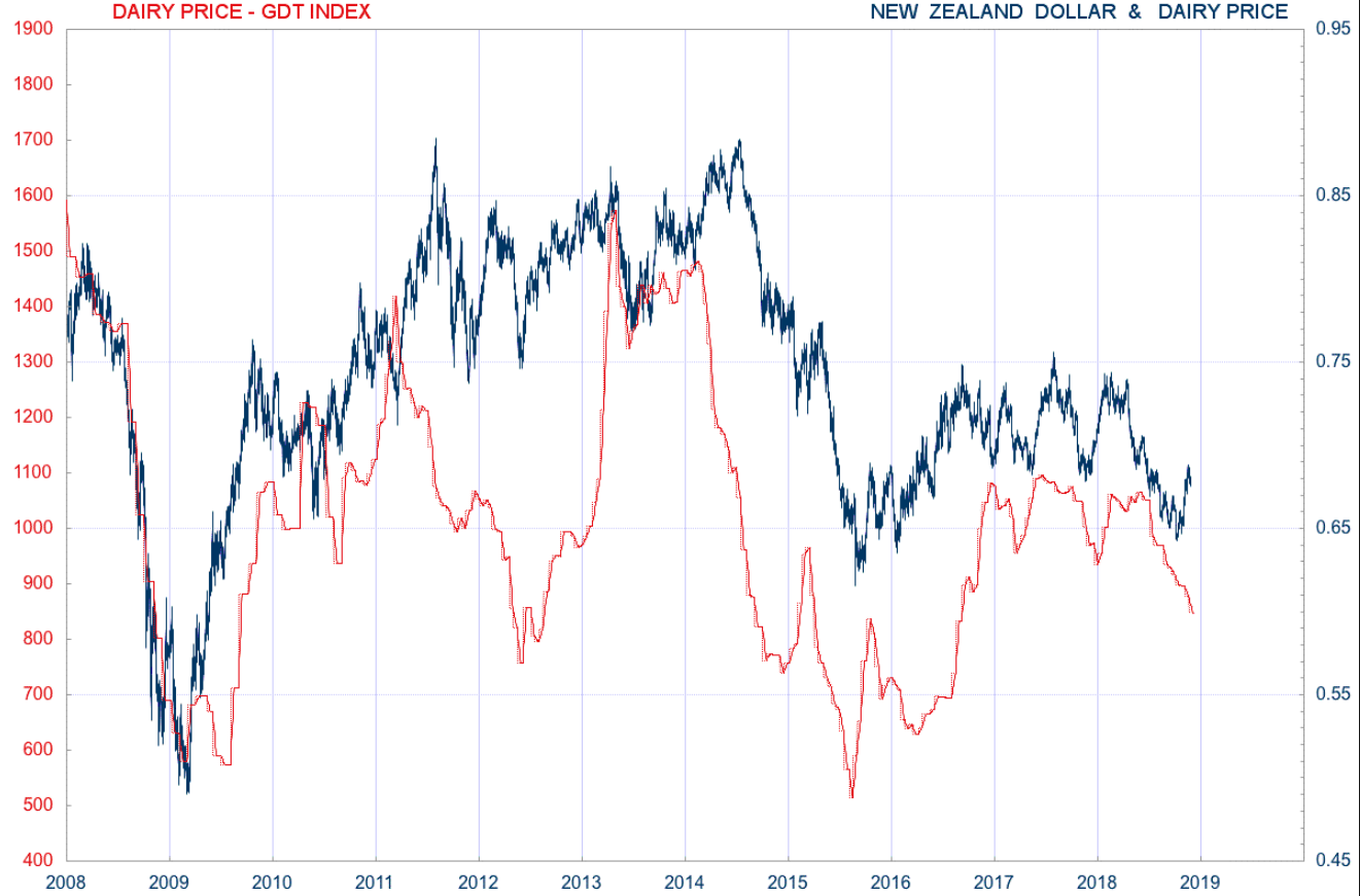 The NZ economy has slowly become less reliant on the dairy sector, but there is still a strong correlation between dairy prices and the NZD/USD.